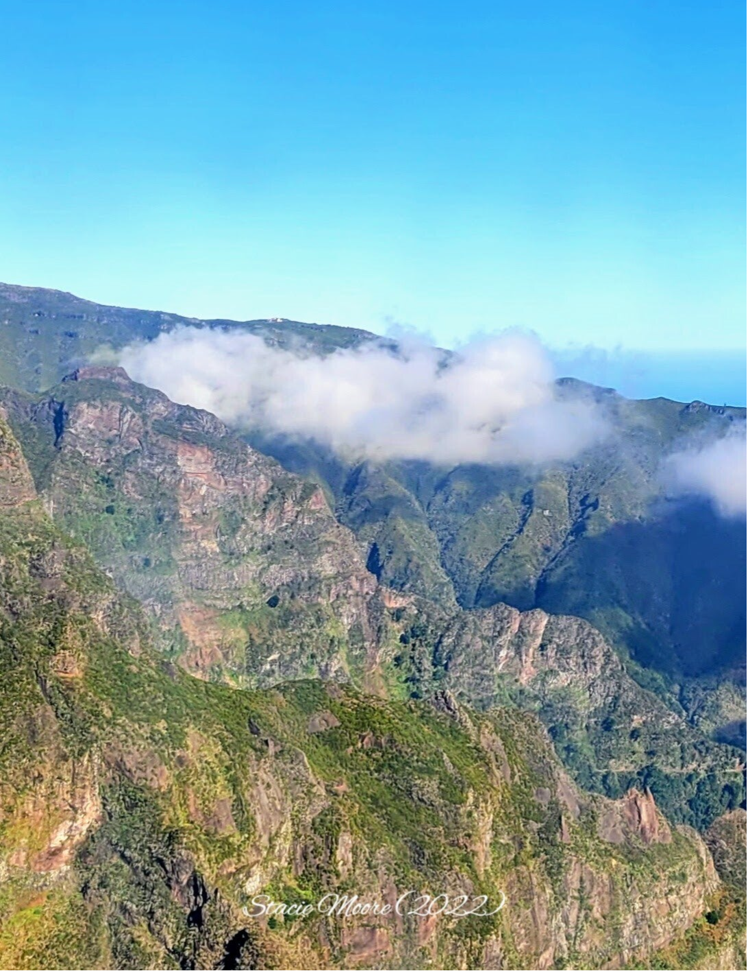 This mountain landscape is a blaze of color under the low-hanging clouds. The clouds add drama to the scene, making the mountains look even more majestic than usual.
