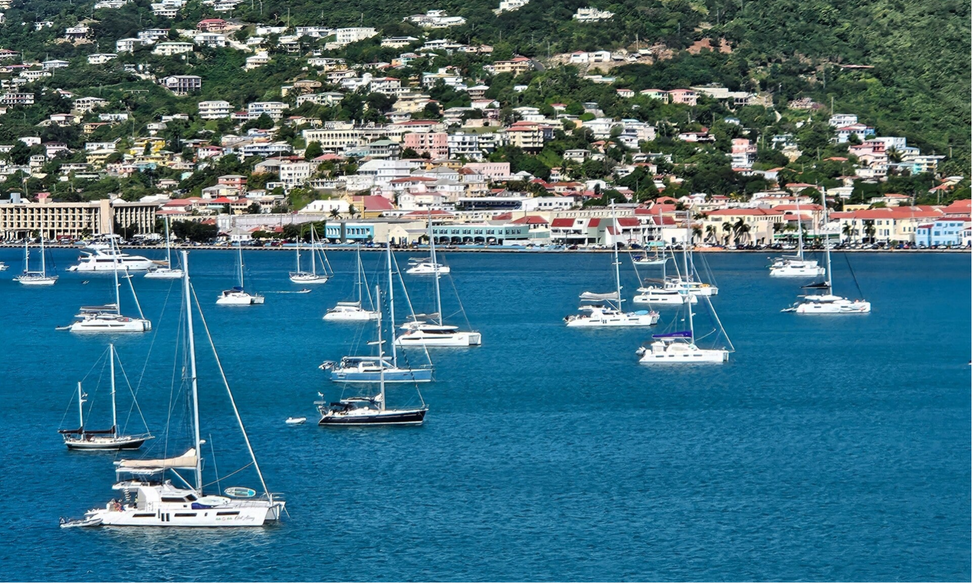 Nothing compares to the crystal-clear, immaculate blue waters of St. Thomas as they shimmer in the brilliant sun. The harbor comes alive with a beautiful variety of yachts, elegant sailboats, and catamarans. The scene creates a remarkable sense of tranquility as they glide gently on the calm waters, full of vibrant colors, a moment of breathtaking beauty that is both uplifting and mesmerizing.
